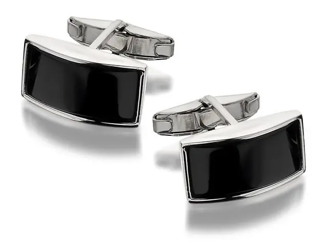 Sterling Silver Onyx Rectangular Cufflinks - A4748