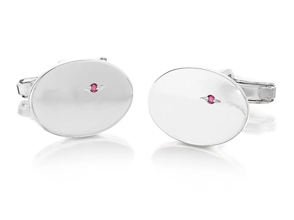Sterling Silver Ruby Oval Cufflinks - A4721