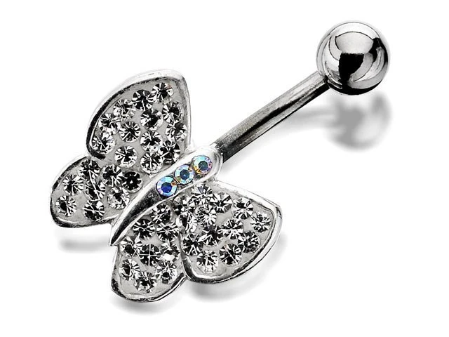 Surgial Steel Belly Bar With Crystal Butterfly - 12mm - J3698