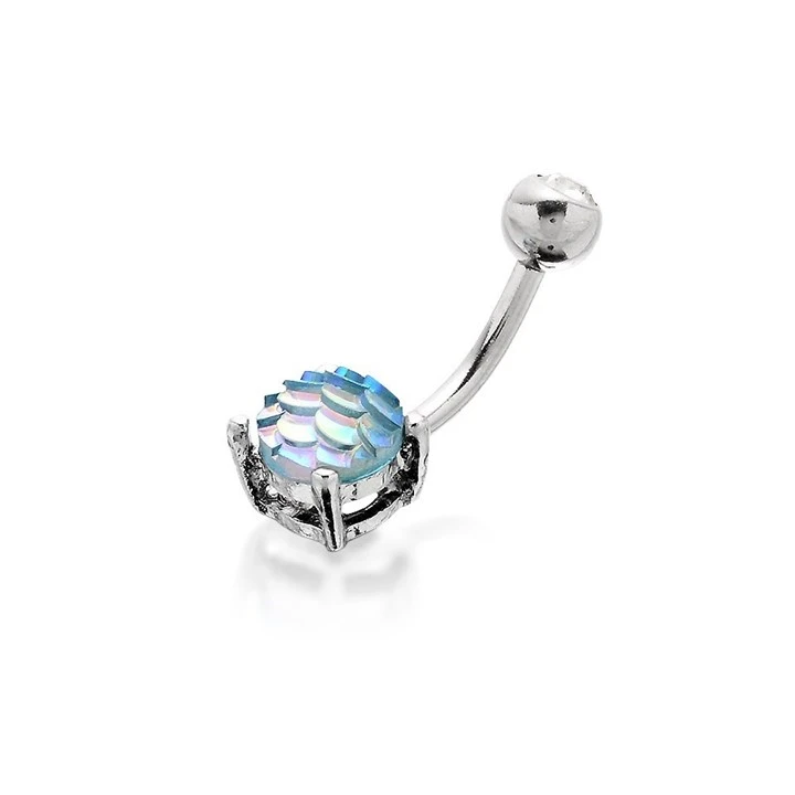 Surgical Steel Blue Crystal Belly Bar - 10mm - J3532