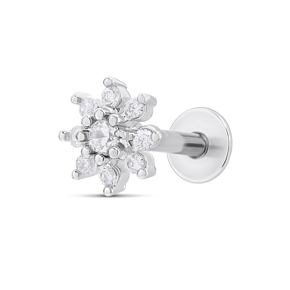Surgical Steel Crystal Flower Cluster Labret Single Stud - J3920