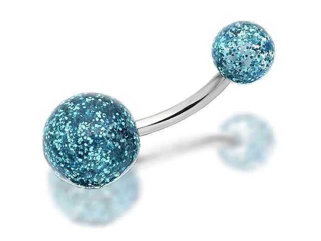 Surgical Steel Double Turquoise Discoball Belly Bar - 12mm - J3518