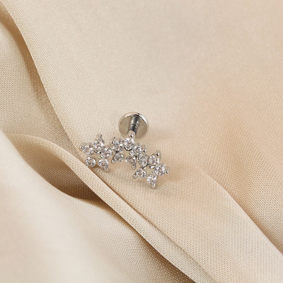 Surgical Steel Flower Trio Labret Single Stud - J3927