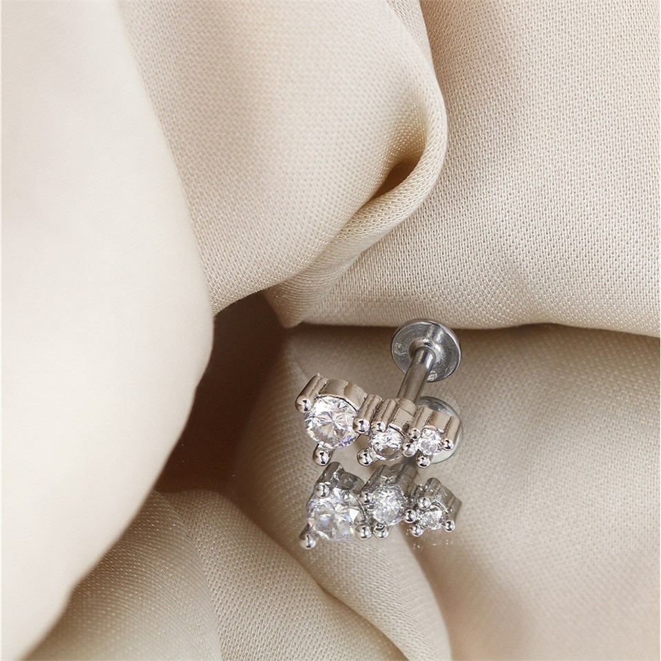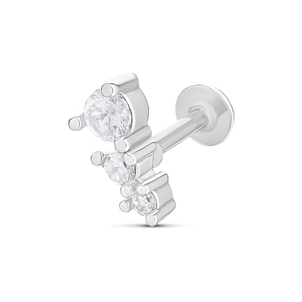 Surgical Steel Round Crystal Trio Labret Single Stud - J3918
