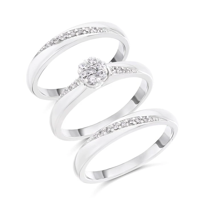 The Bridal Suite 9ct White Gold Diamond Engagement, Wedding And Half Eternity Ring Set - 35pts - S3279