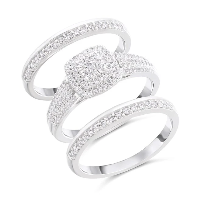 The Bridal Suite 9ct White Gold Diamond Engagement, Wedding And Half Eternity Ring Set - 63pts - S3275