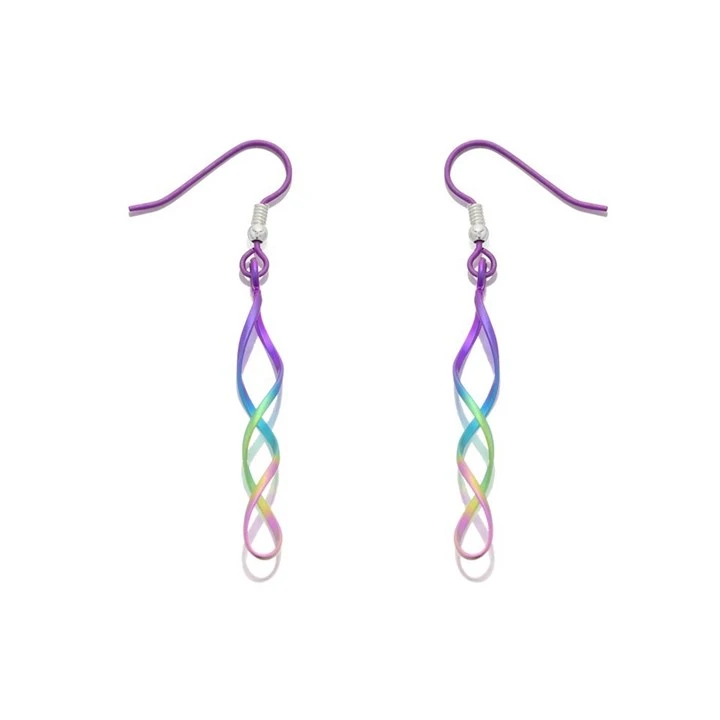 Ti2 Titanium Rainbow Double Twist Hook Wire Earrings - 54mm drop - J19503