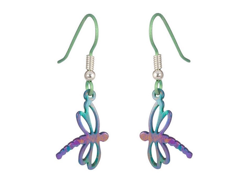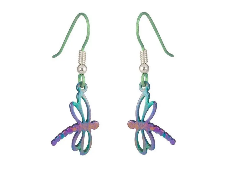 Ti2 Titanium Rainbow Dragonfly Hook Wire Earrings - 35mm drop - J19511
