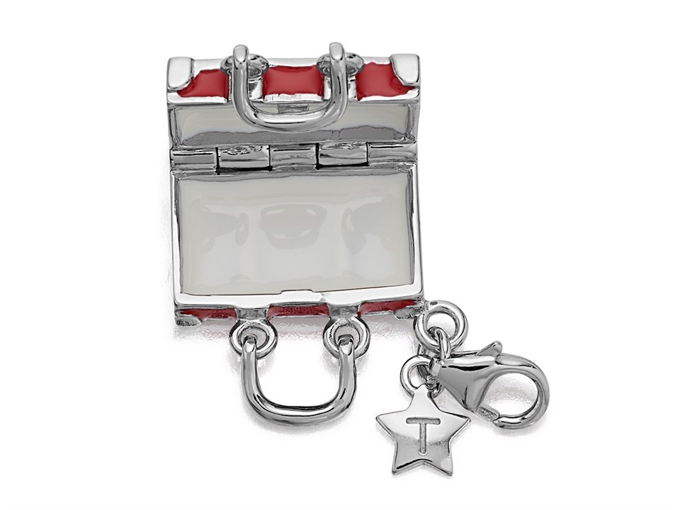 Tingle SCH125 Silver Red Enamel Suitcase Charm - F8124