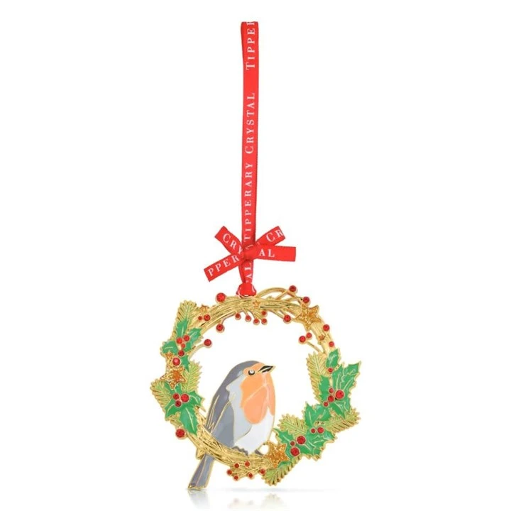 Tipperary Crystal 140561 Robin In Wreath Hanging Decoration - P6301