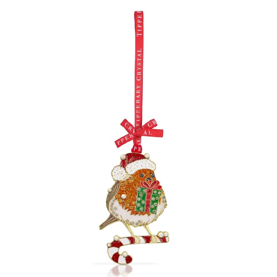 Tipperary Crystal 153028 Robin With Gifts Hanging Decoration - P6302