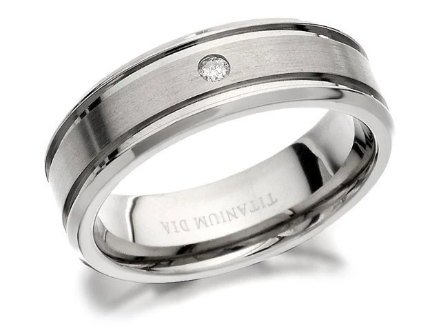 Titanium Diamond Set Matt And Polished Ring - 7mm - J1004