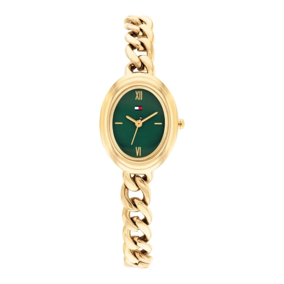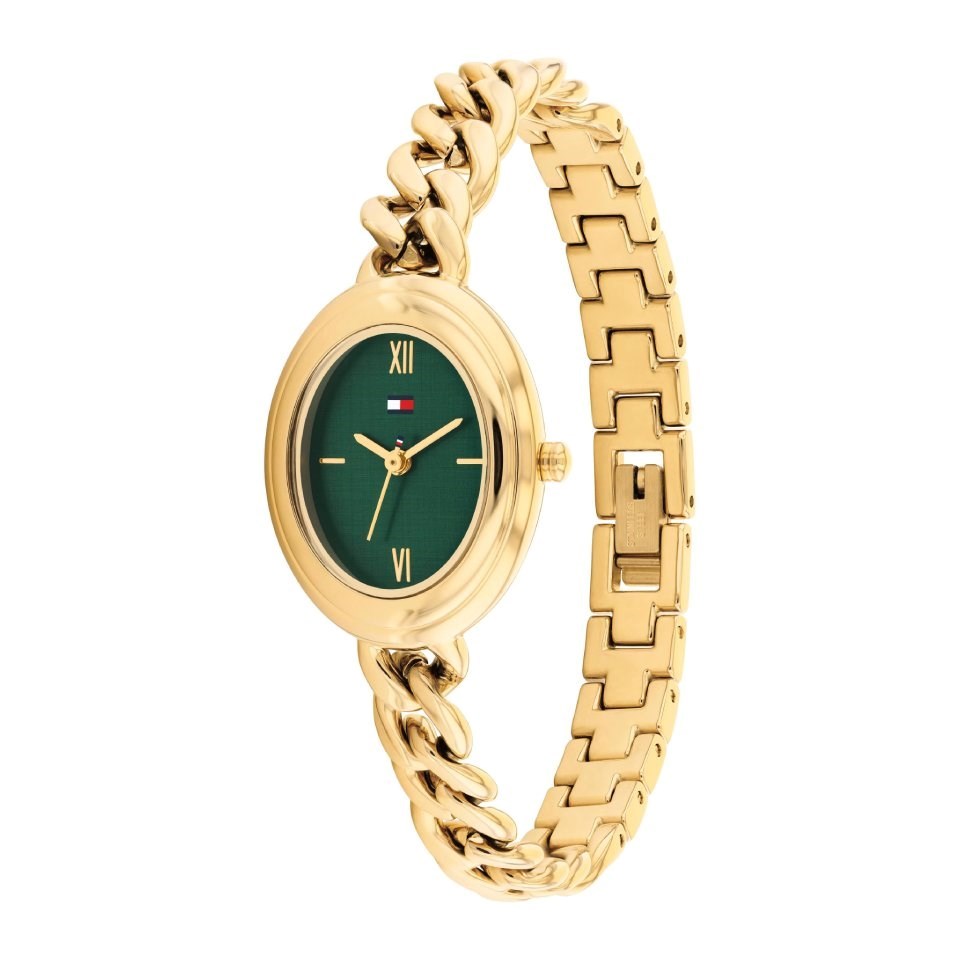 Tommy Hilfiger 1782877 Demi Oval Gold Tone Green Dial Chain Bracelet Watch - W95457