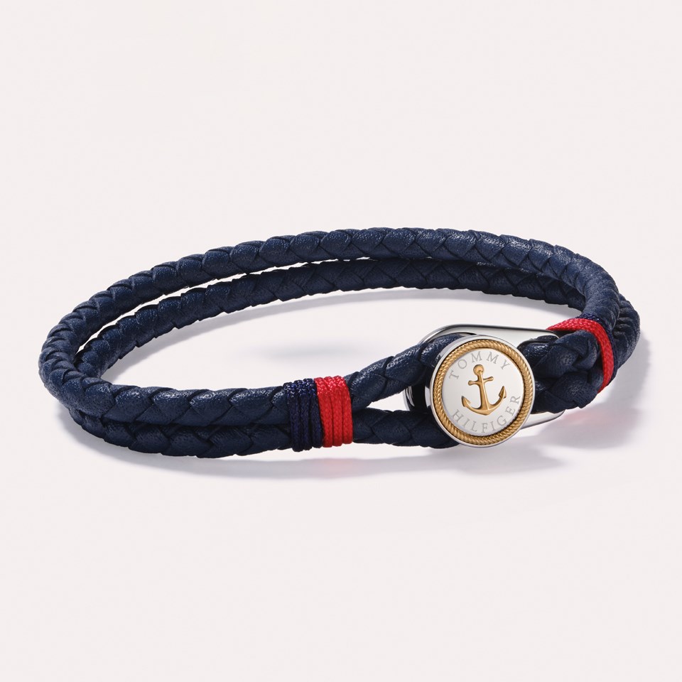 Tommy Hilfiger 2790691 Stainless Steel And Blue Leather Two Braid Bracelet - A9664