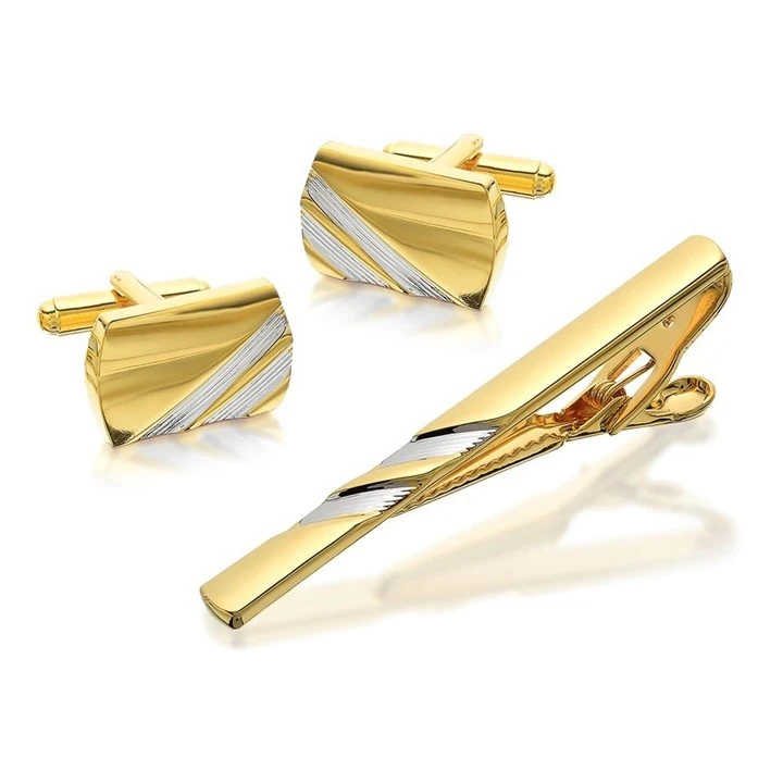 Two Tone Cufflink And Tie Slide Set - A4524