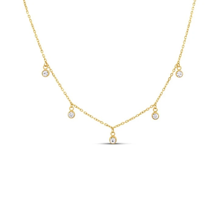 Add sparkle to your everyday style with this elegant five drop stone necklet from the exclusive VIVA collection. Featuring five shimmering cubic zirconia stones, this delicate design is perfect for layering with other chains or wearing solo for a subtle statement.