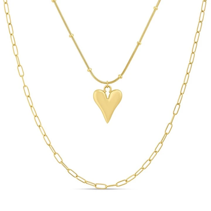Elevate your style with this stunning double-layered necklace from the exclusive VIVA collection. Featuring a gold-tone heart pendant on a ball station chain paired with a complementary open link second strand, this necklace creates a trendy, layered look in one easy-to-wear piece.