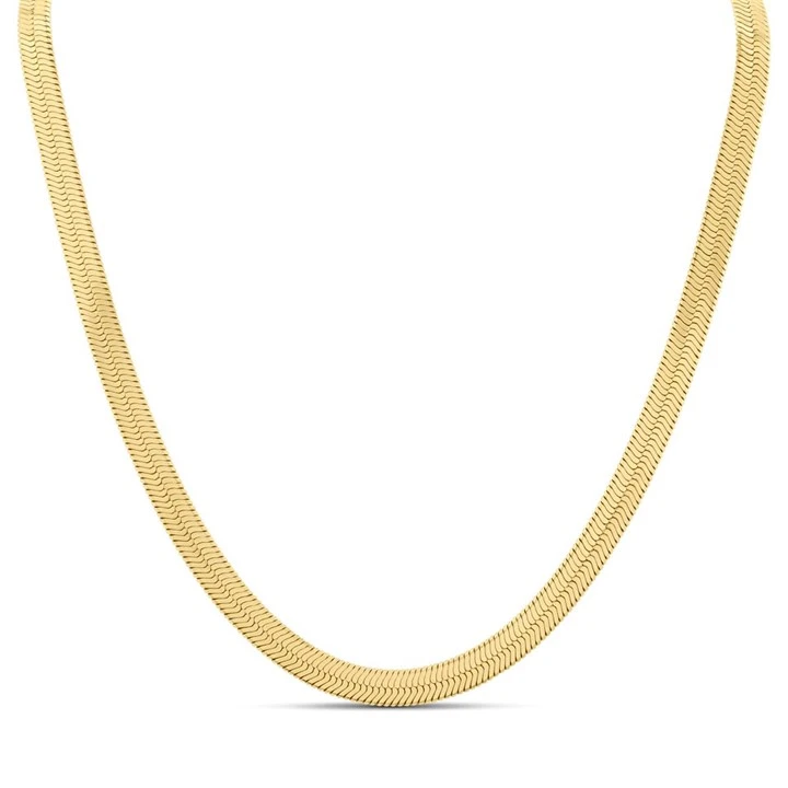 Make a bold style statement with this stunning 5mm wide flat snake chain necklace from the exclusive VIVA collection. Whether layered with other chains or worn solo, this sleek and modern piece adds a touch of luxury to any outfit.