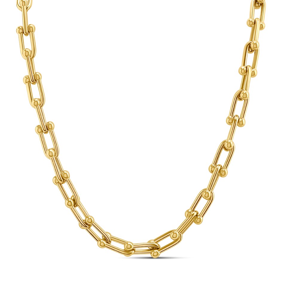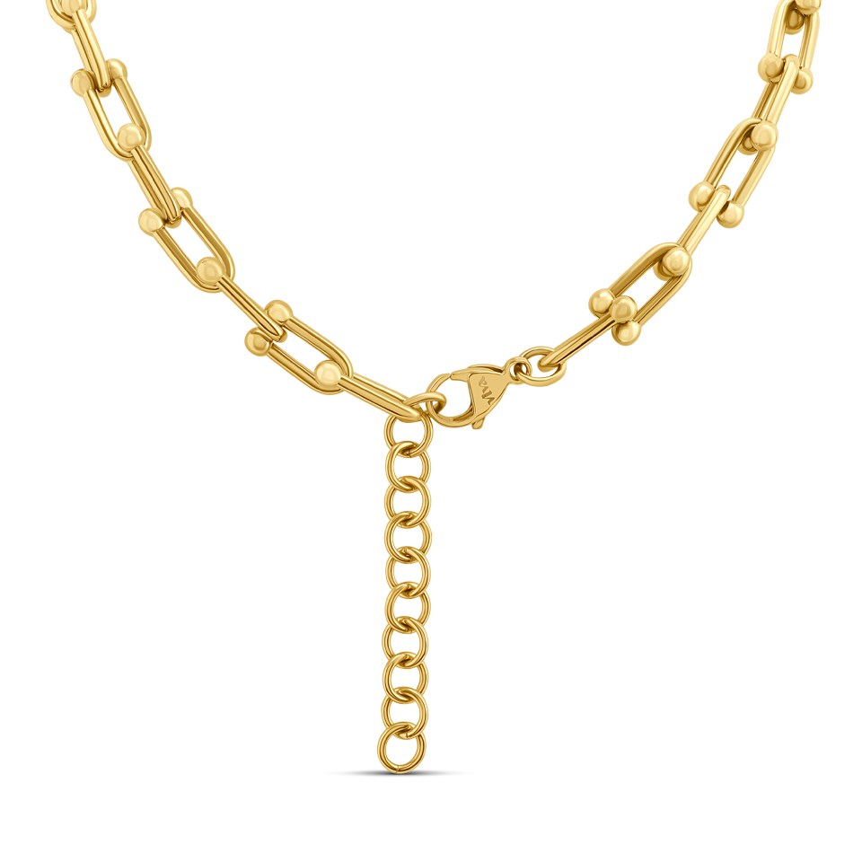 Crafted from high-quality gold-tone ion-plated stainless steel, the necklace boasts a durable, tarnish-resistant finish that’s ideal for everyday wear. The secure karab clasp ensures it stays in place, while the 18-inch (46cm) length with a 2-inch (5cm) extension chain provides an adjustable fit.