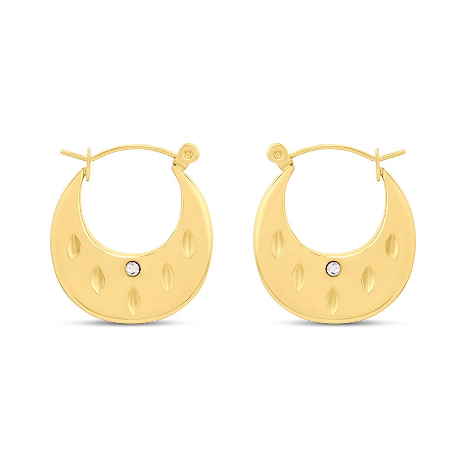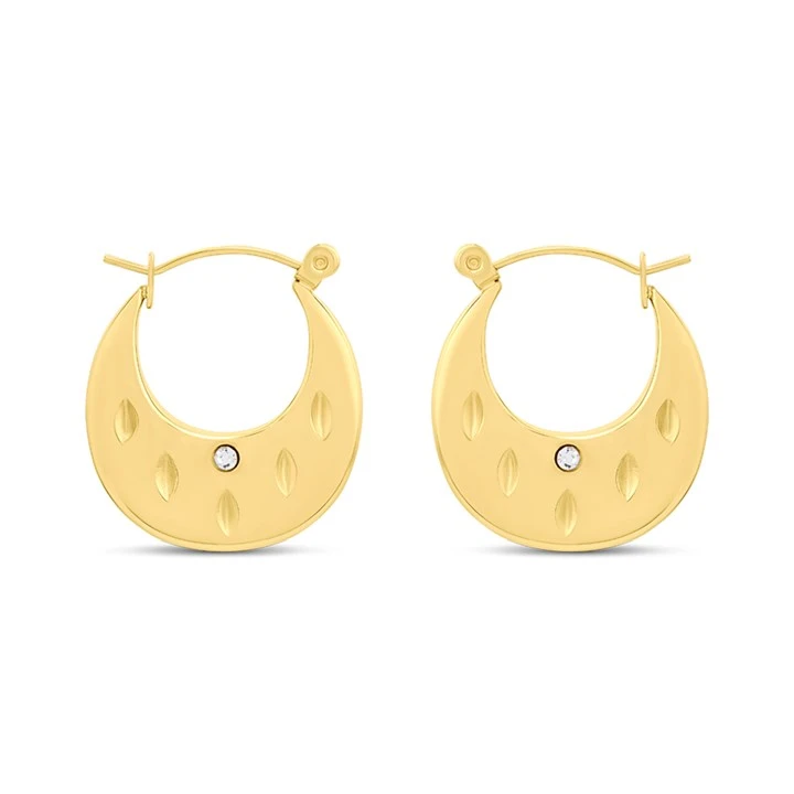 Add subtle elegance to your jewellery collection with these 21mm wide patterned creole earrings set with sparkling crystals, from the exclusive VIVA collection. Crafted from high-quality gold-tone ion-plated stainless steel, they feature a durable, tarnish-resistant finish that’s perfect for everyday wear.