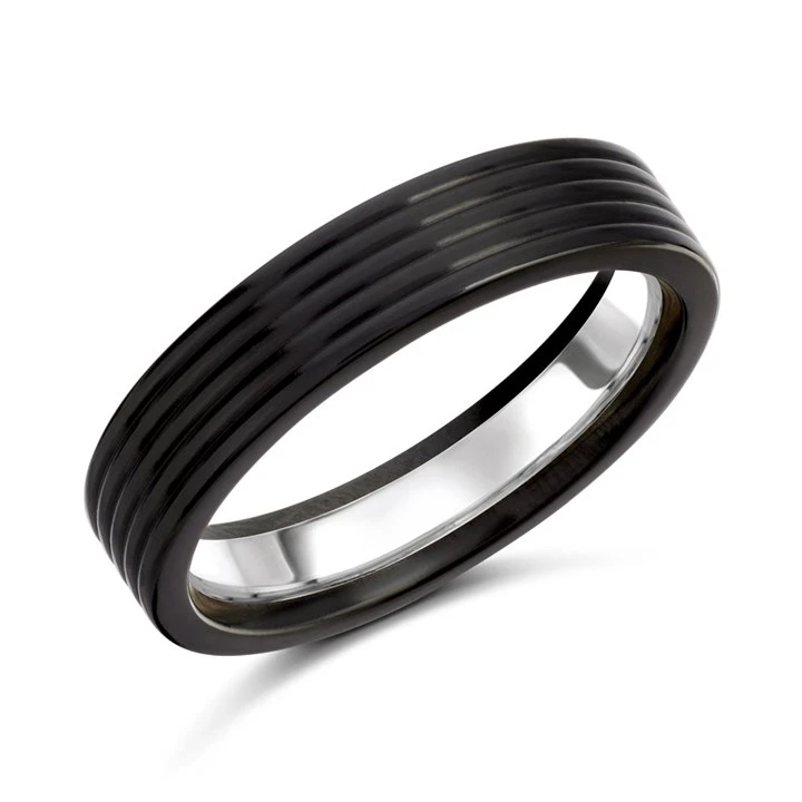 Zedd Zirconium And Silver Ribbed Wedding Ring - 5mm - R4907