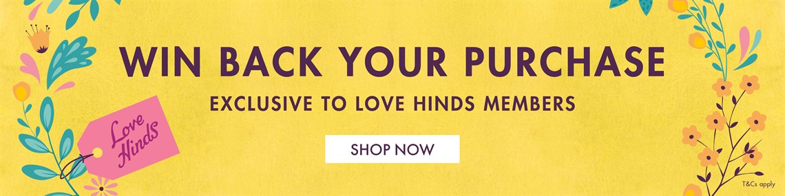 Simply complete your purchase and sign up to Love Hinds at checkout for a chance to win back the full value of your order. Already a Love Hinds member? Just make a purchase during the promotional period and you’ll be automatically entered into the draw. Full T&Cs here