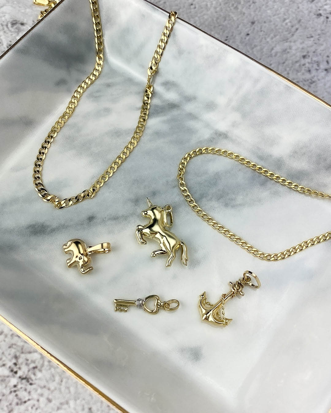 Charms are a guaranteed way to show off your personality. You can choose gold or silver tone, or mix and match to suit your favourite colours. There’s so much flexibility as you can include names, initials or important memories either on your bracelets, anklets or necklaces. You can switch them around too – the possibilities are endless.