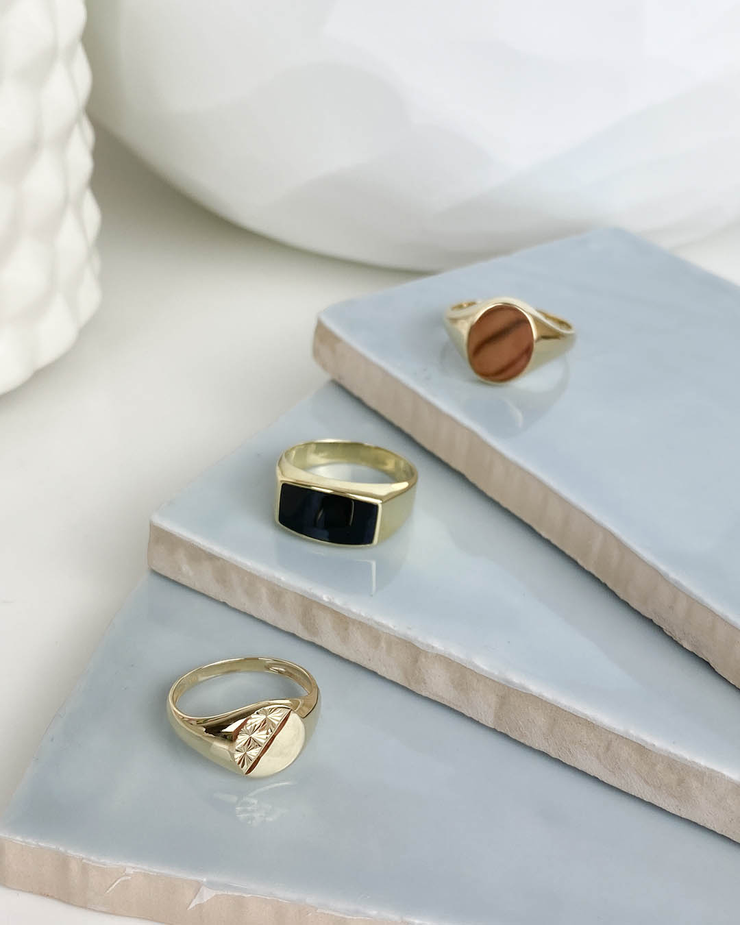 Once forgotten about, signet rings have made a comeback. Following the chunky chain trend, large signet rings with meaning are more popular than ever and are loved by men and women alike. Including diamonds, engravings, patterns and gemstones, the signet ring has been worn like never before, with our customers combining more than one style per hand!