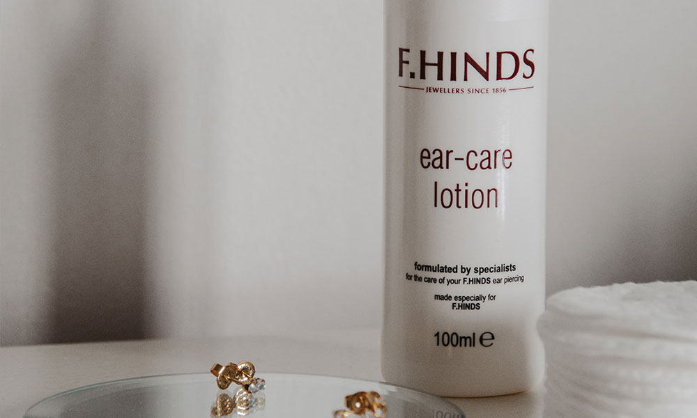 At F.Hinds we take aftercare very seriously as it is key to your ear piercing healing well and keeping the site healthy. Our ear piercers will talk you through the recommended aftercare steps before and after each piercing and our ear piercing service includes a FREE bottle of aftercare solution. You are also welcome to upgrade to our advanced aftercare solution which means that you will only need to follow the aftercare process for 3 weeks instead of the usual 6 weeks. The new and advanced solution is dermatologically tested and cleans, sooths and protects the skin without stinging, whilst promoting faster healing.