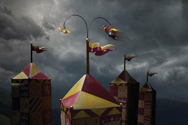 A famous wizarding sport that’s played on broomsticks, Quidditch has been played at Hogwarts for nearly 1000 years. Just like his dad James Potter, Harry took to Quidditch in his first year at Hogwarts and is the Seeker for Gryffindor’s Quidditch team. In this ornament, Harry is chasing the Golden Snitch above one of the Gryffindor tents on the Quidditch field. Gryffindor house colours are shown throughout this ornament on the tent, flag and Harry’s uniform. When plugged in, the ornament rotates as Harry chases the Golden Snitch.