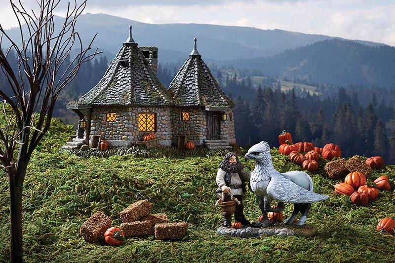 The Harry Potter Village collection not only captures of the wonder of the Wizarding World, it includes pieces that, when collected together, create an accurate and life-like display. Take the Hagrid’s Hut ornament for example, this can be paired with the figurine “A Proud Hippogriff, Indeed,” which features Hagrid and his loyal friend Buckbeak the Hippogriff.