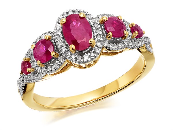 The two had known each other since childhood, so Prince Andrew knew exactly how to impress Sarah. He designed the ring himself, choosing a striking Burmese ruby as the main stone to complement Sarah's equally as striking red hair. Surrounding the ruby was a halo of 10 diamonds set onto a yellow gold band.