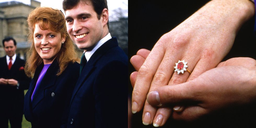 Although Sarah Ferguson and Prince Andrew have been divorced for over 21 years now, it would be wrong for us not to talk about Sarah's bold engagement ring. Parents of the newly engaged Princess Eugenie, Andrew and Sarah announced their engagement in March 1986.