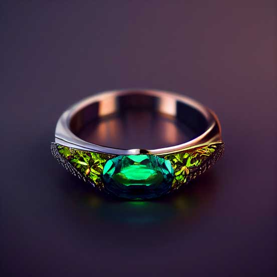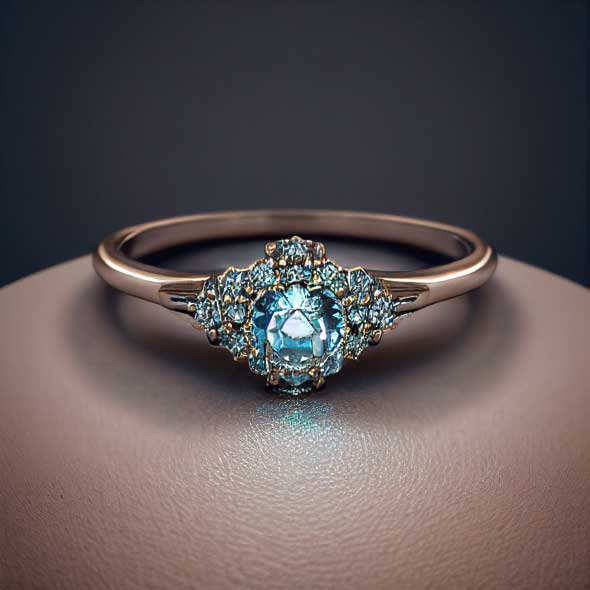 The ‘floating city’ of Venice is one of Italy’s idyllic destinations for a romantic trip away – and AI clearly had a romantic gondola ride along the city’s waterways in mind when designing a Venice-inspired ring. Ornate aquamarines reflect the city’s famous canals, while the design itself evokes classic Venetian architecture.