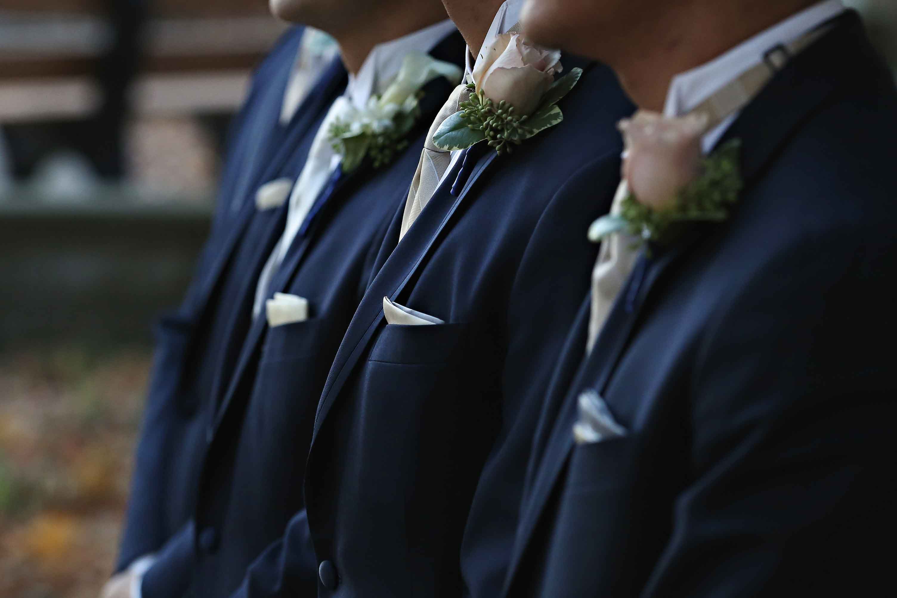 You may have arranged for those in your wedding party to wear matching suits. Although, providing them with slightly different adornments will offer an individual touch to each of their outfits.