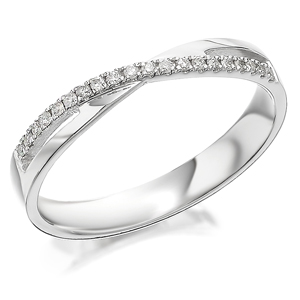 The wedding ring is set with an unbroken circle of diamonds or stones either all the way around (eternity) or half way (half eternity). One could also select from our range of Eternity Rings but these do not have a lifetime wedding ring guarantee.