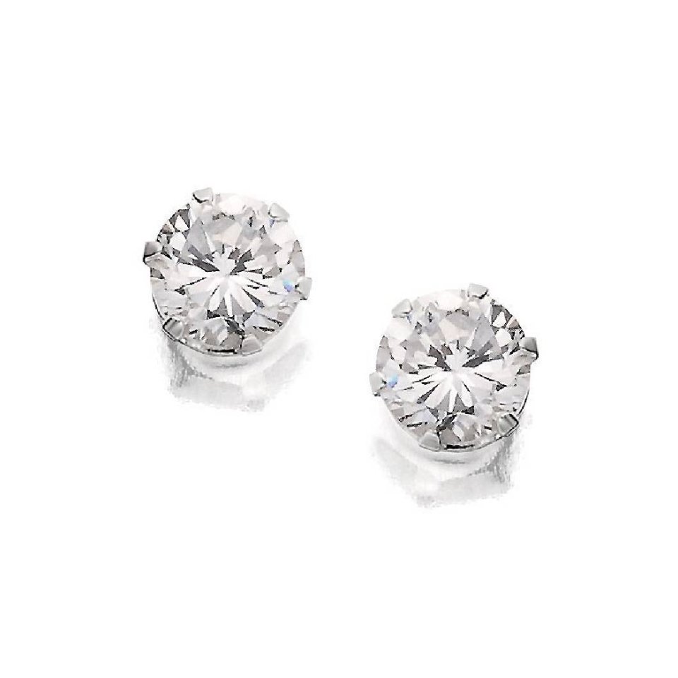 Silver Round Cubic Zirconia Stud Earrings - 4mm - F0484