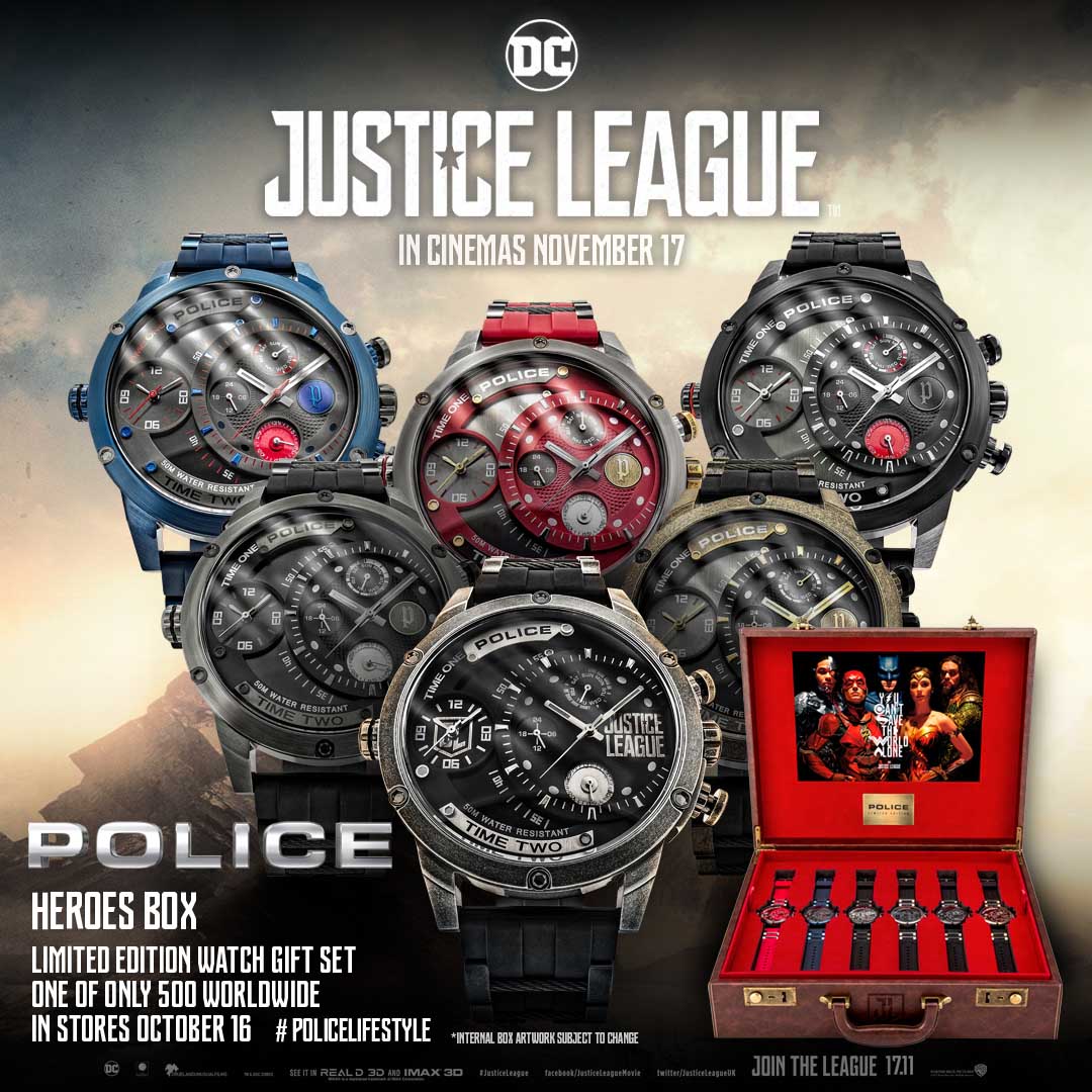 Justice League will be released this year on 17th November, and to celebrate watch and jewellery brand Police have teamed up with Justice League to bring loyal fans a unique Limited Edition Heroes Box – a collection of 6 statement timepieces. The Heroes Box is on sale from 16th October 2017 and you’ll need to get yours quick because there are only 500 of them in the whole world!