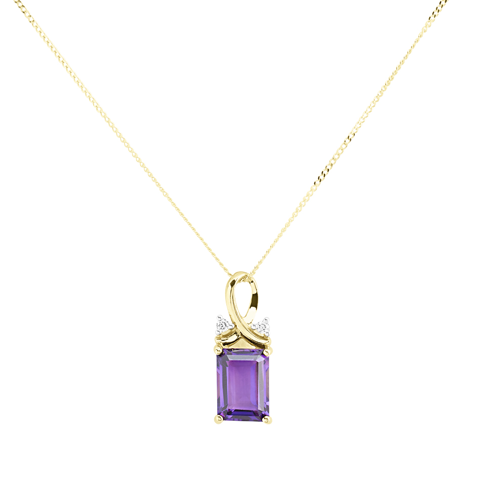9ct Gold Amethyst And Diamond Necklace - R82114