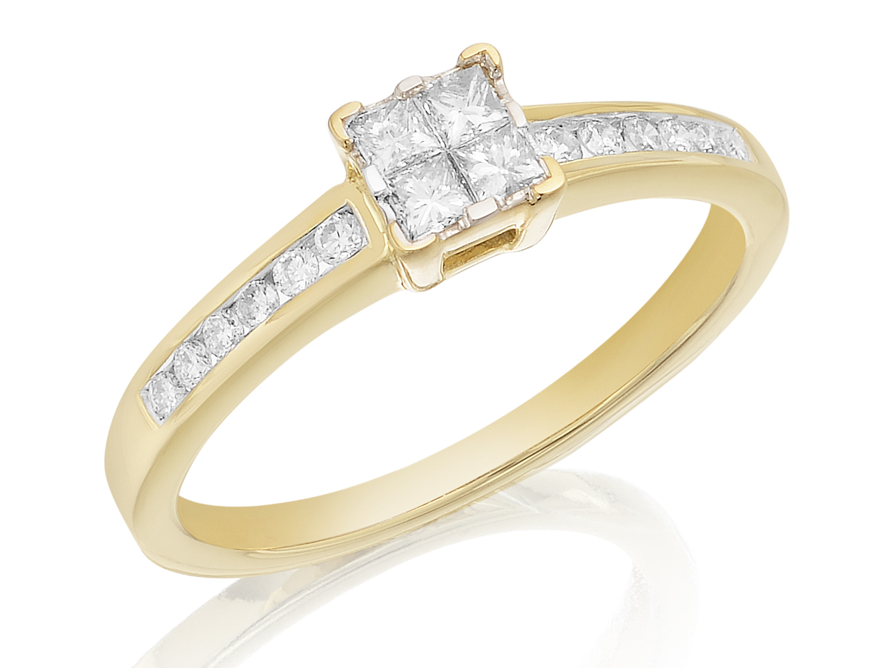 9ct Gold Princess Cut Diamond Cluster Ring - 1/3ct - D6059