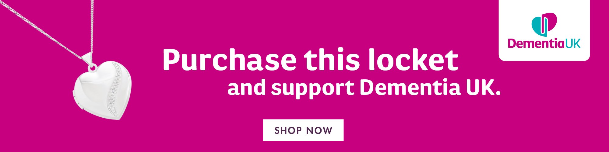 We’re donating proceeds from our exclusive Dementia UK diamond heart locket and chain, available in all stores and online, as well as our pin badges sold in-store. Join us in making a difference.
