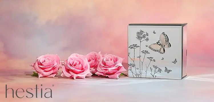 Hestia gifts always feature delightful floral and butterfly patterns, usually intertwining with crystals, pearls and beautifully bright colours. With photo frames, clocks, trinket boxes and jewellery boxes in the range, Hestia offers a very pretty gift alternative.