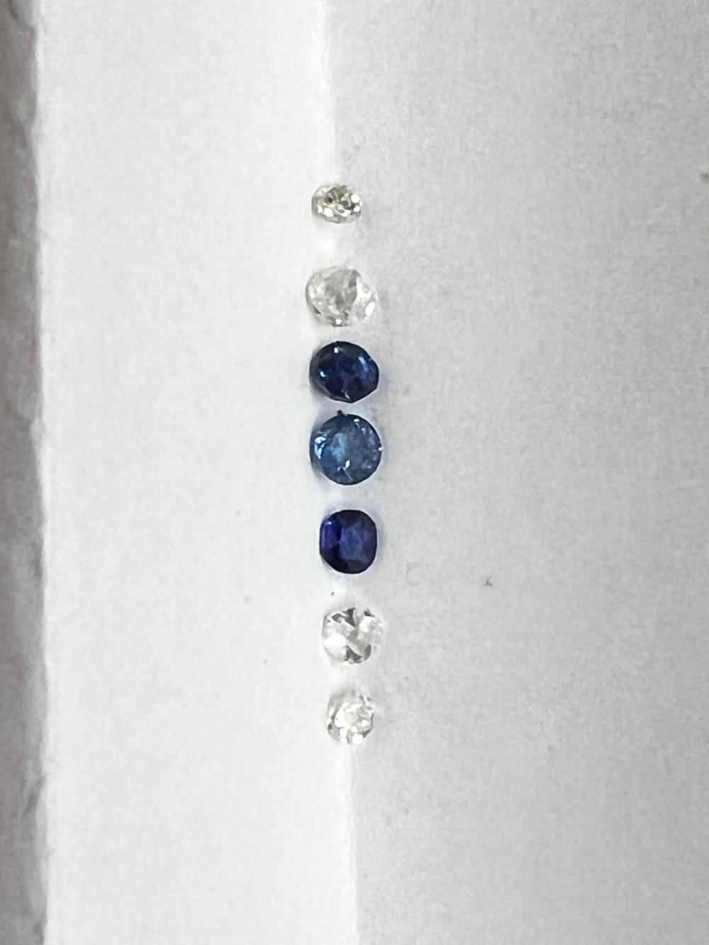 After carefully removing the stones, we discovered a lovely collection of old-cut diamonds and sapphires. Using these, we created a beautiful half-eternity ring in 9ct gold.