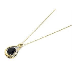 9ct Gold Black Sapphire And Diamond Teardrop Necklace - R8380 Matching Item Available Matching Item Available