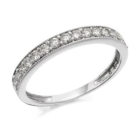 9ct White Gold Beaded Edge Diamond Half Eternity Ring - 40pts - D7275