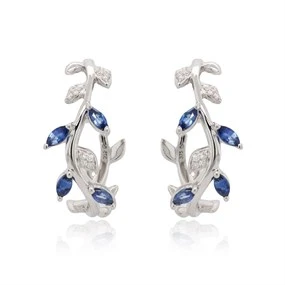 Reduced 9ct White Gold Sapphire And Diamond Hoop Earrings - 12pts per pair - D94120