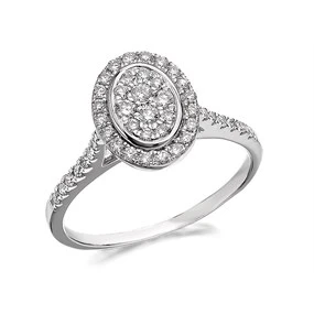 9ct White Gold Diamond Oval Halo Cluster Ring - 1/2ct - D6808 1/2 Carat Diamond Weight 1/2 Carat Diamond Weight