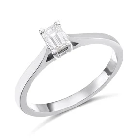 To perfectly complement this beautiful grey-white metal, each ring in our collection is set with captivating diamonds. To find the ideal diamond size, you can shop by the diamond’s carat weight or shape. Take your pick from a round brilliant stone or princess cut diamond to find the perfect gem for your bride-to-be.