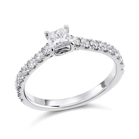 When it comes to proposing to your significant other, you want every element to be as perfect as they are – which is why we offer a selection of truly exquisite princess cut engagement rings that we’re sure you’ll both fall in love with. Princess cut diamond rings are the second-most popular shape after round brilliant cut. Contemporary yet beautifully timeless in every way, these princess cut diamonds sparkle in the light and look stunning when worn.