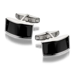 Sterling Silver Onyx Rectangular Cufflinks - A4748